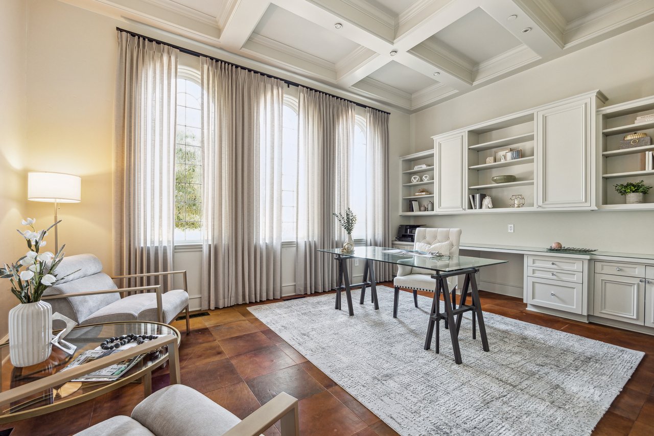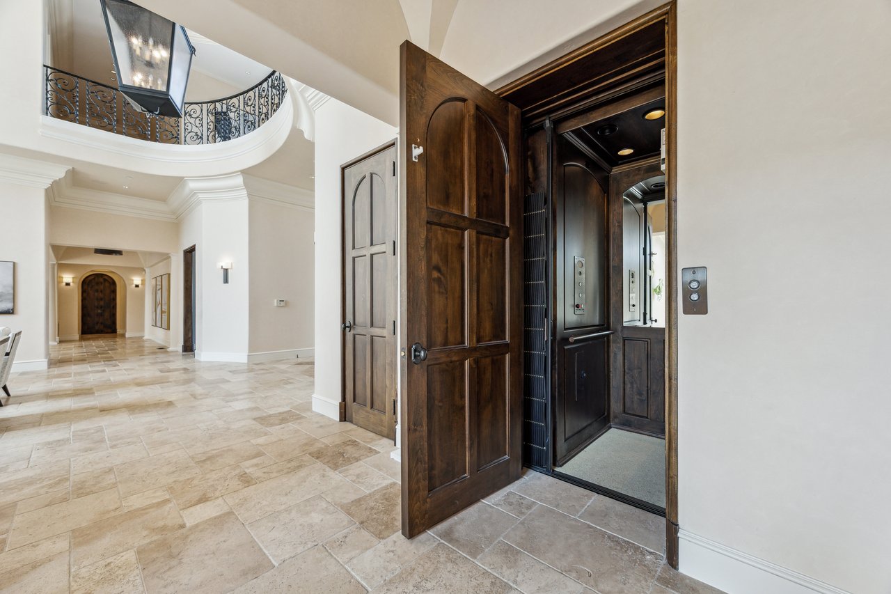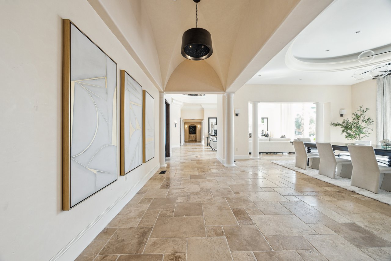 A wine connoisseur’s dream, the estate includes a temperature-controlled wine cellar with capacity for 1,500 bottles, including dedicated magnum storage. The chef’s kitchen boasts professional-grade stainless steel appliances, seamlessly connected to a vaulted family room, offering bold design and ultimate functionality.