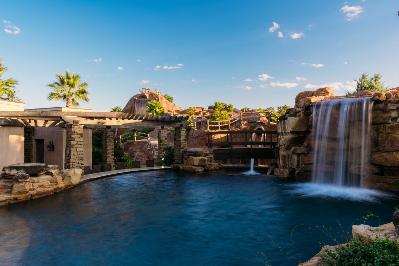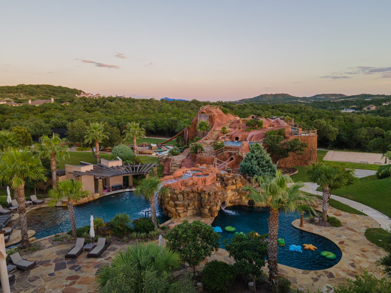 One of the largest private waterparks in Texas, featuring speed slides, lazy rivers, waterfalls, grottos, and a diving platform